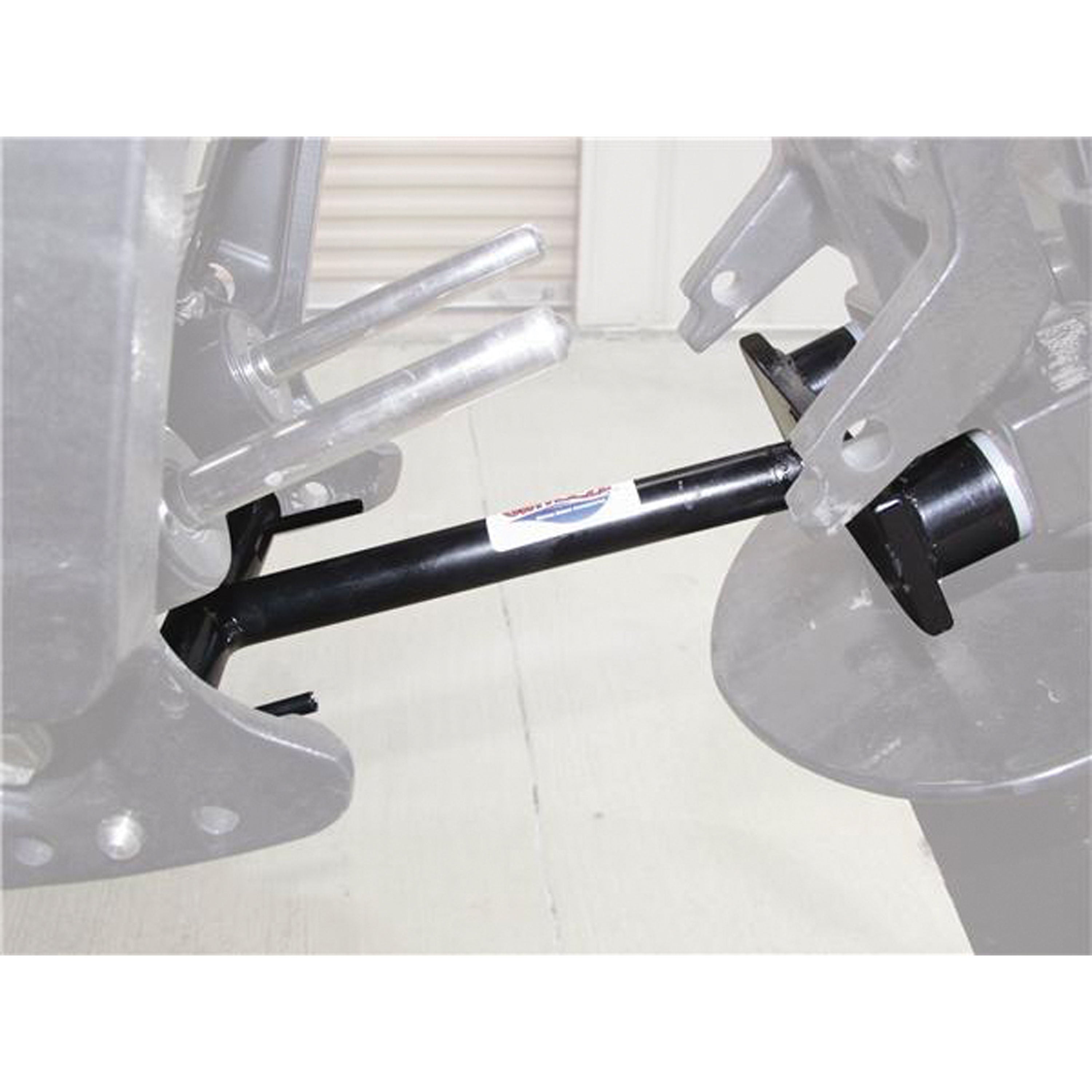 The Attwood Lock 'N Stow locks the outboard motor in forward position while trailering, greatly reducing the effects of road shock. Does not "tie" engine's lower-unit to trailer, eliminating excessive pressure on hydraulic seals and unsightly scuff marks. Small compact mount can be easily stored in just about any boat compartment. Constructed of black powder-coated steel with stainless steel pins.