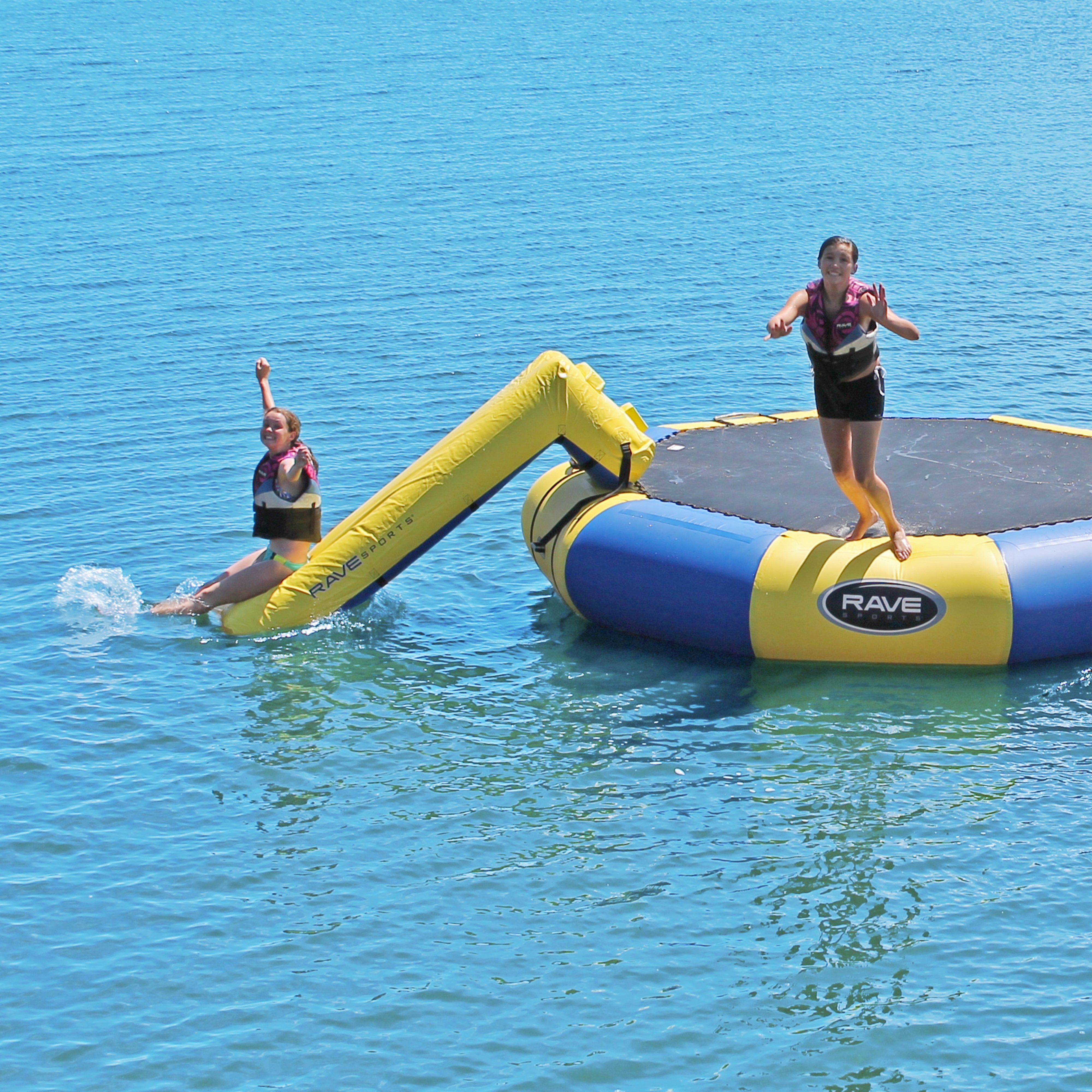Made from only the best quality materials available, the Aqua Slide, Small delivers each and every time. Unlike other, cheaper water trampolines, RAVE's Aqua Slide, Small, can be located anywhere around the tube providing you with complete flexibility. The Aqua Slide, Small attaches to the tube by two straps that wrap around the tube. The Aqua Slide, Small connects to the Aqua Jump Eclipse 120 water trampoline and the Bongo 10' and 13' swimming platforms.
