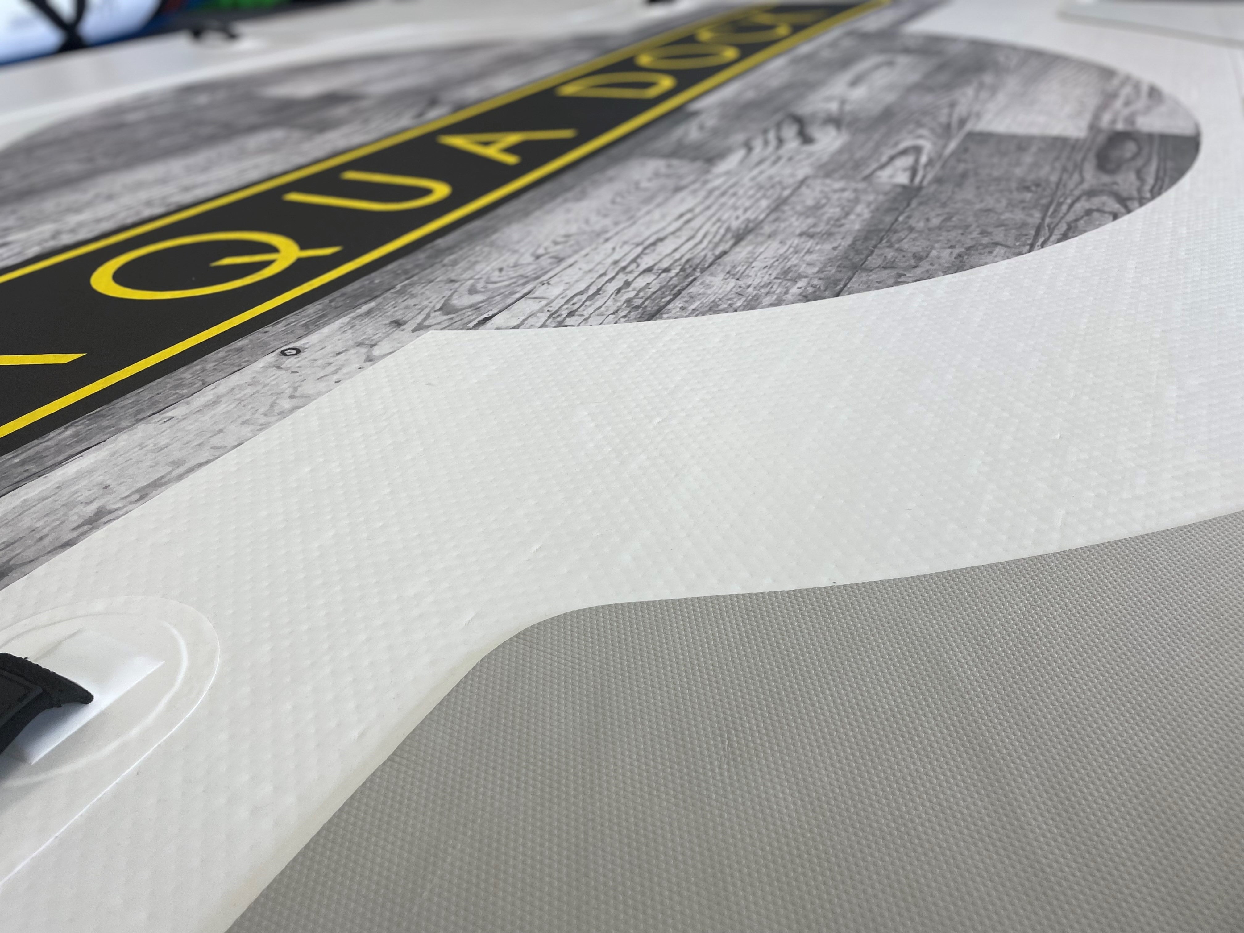 NEW! Floating dock. Swim platform. Party island. Sun deck. Portable flotilla. Water game board. Boat tool bench. Fishing hole stand. In summary ?Ǫ game changer! The Aqua Dock 10 is an all-in-one versatile floating dock that offers 100 square feet of water interaction only limited by your imagination. Extreme rigidity and buoyancy with the highest-grade, tough-as-nails drop-stitch PVC inflated to a 6" thickness able to hold up to 10 adults (max 1,800 lbs.). Durable inflatable technology lets you take an Aqua Dock 10 wherever you go. Deflated, folded into thirds, and rolled up like a sleeping bag, it easily stores in an RV or on your boat. Or, with two stainless steel anchor points, you can anchor it on your shoreline for lazy summer days of swimming and lounging. Features include four corner non-slip foam areas for lounging and handy cooler resting, eight sturdy D-rings to attach straps to secure coolers and other items, and ten comfy neoprene-covered side handles located in convenient positions for boat tethering and access from deep water. Includes a carry strap with a padded handle for easy roll-and-go transportation and a double action hand pump. Sold separately is a 12V (cigarette lighter) electric pump for quick and easy inflation / deflation.