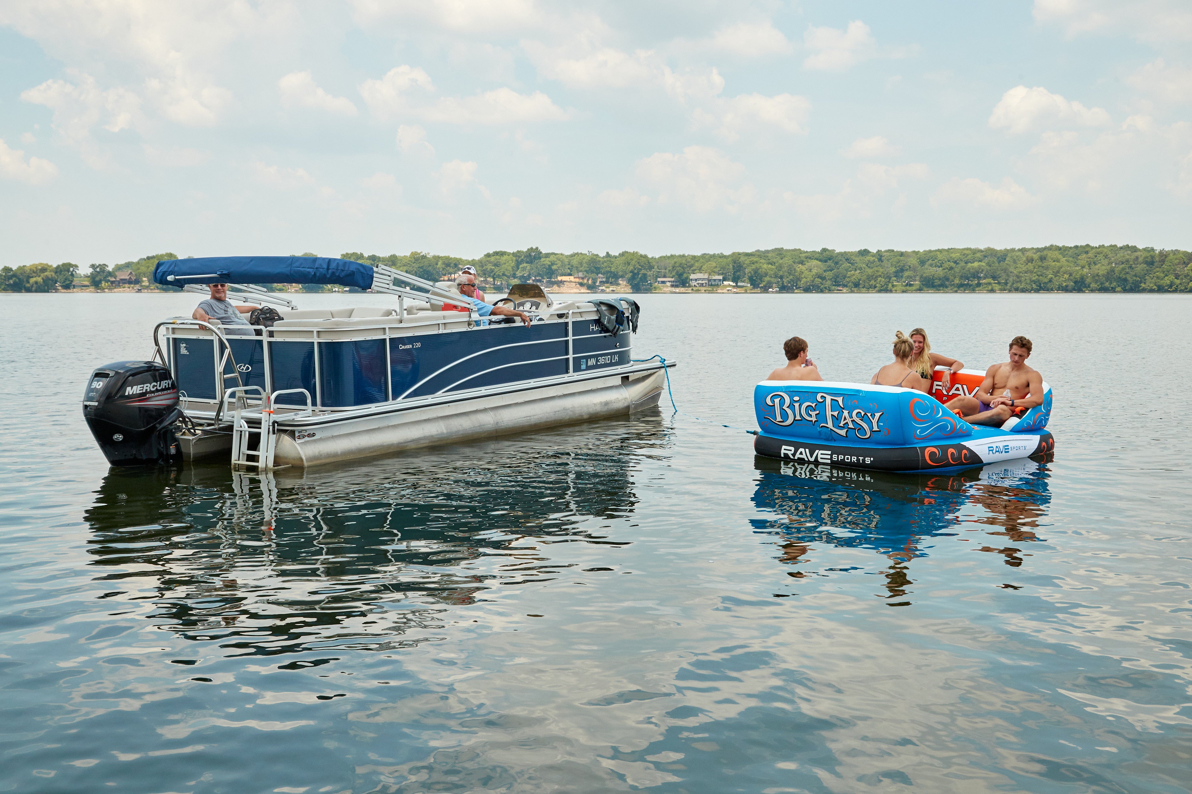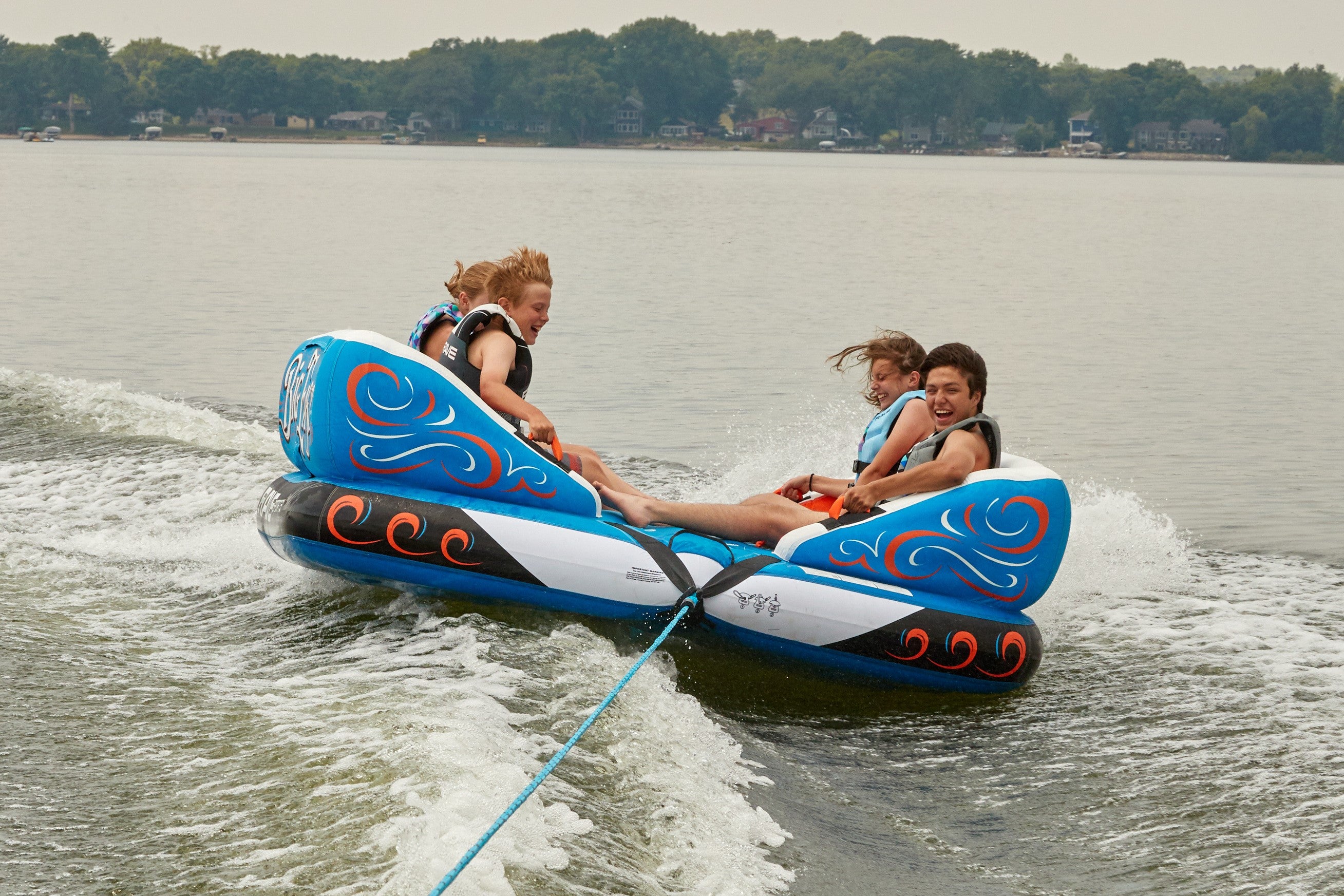 On the Big Easy, life is about big rides and easy livin'! It's Mardi Gras on the water with big comfy seats, beverage holders and a center cooler console for some good ol' fashioned summertime fun. When you feel like adding some Cajun spice, tow it behind your boat for a ride like a hurricane. Feel the easy-going spirit and cool vibes on this boat towable tube with a one-of-a-kind design that's like nothin' else! When towing, the Big Easy's sideways coach-style seats provide spicy backwards- and forwards-facing riding experiences during whip turns. (Always hydrate responsibly and remove cooler and beverages before towing.) When lounging on shore or tethered to a dock or boat, the Big Easy will be a magnet to socializing on the water.