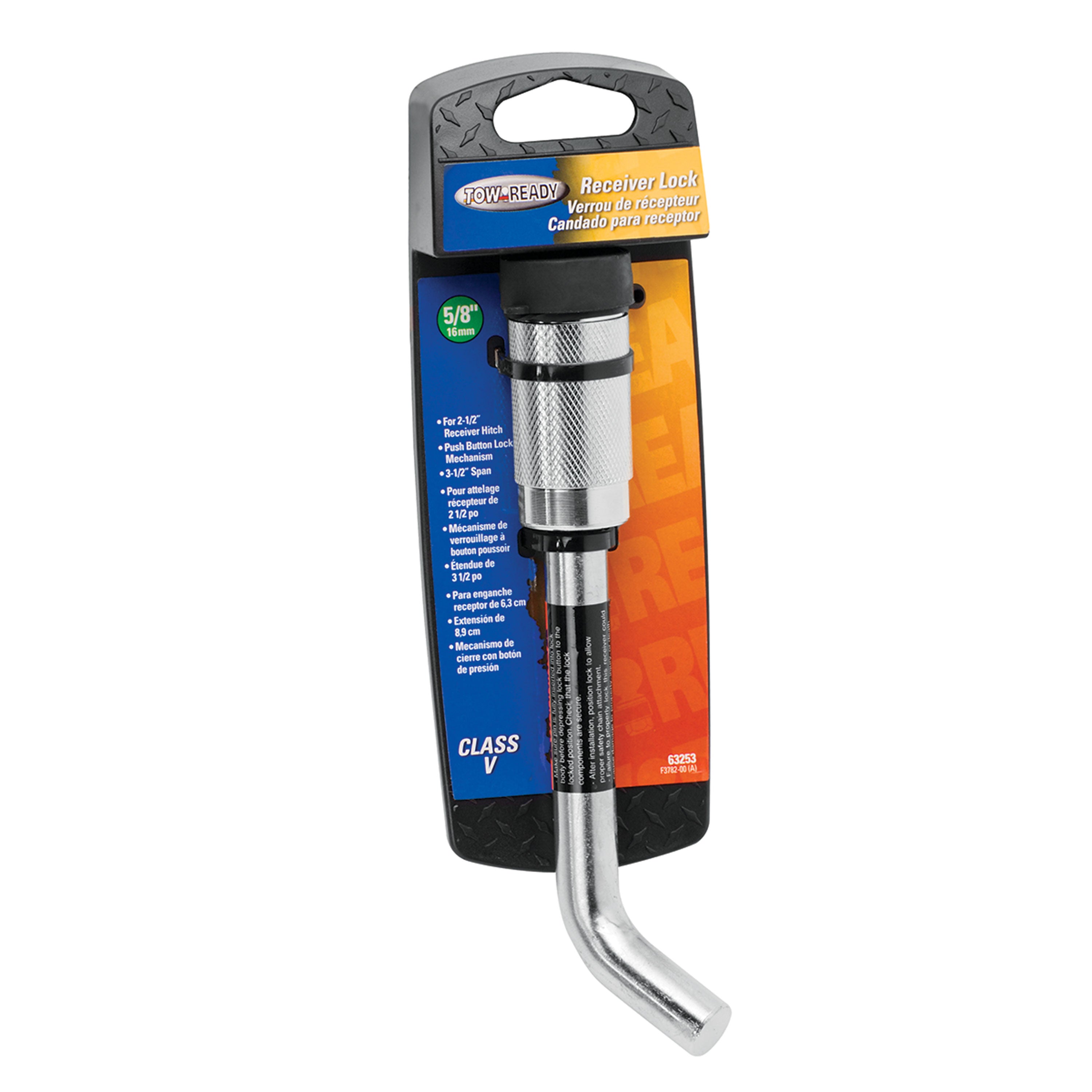 Reese 63253 5/8" Barrel-Style Receiver Lock with Bent Pin for 2.5" Square Receivers - Chrome