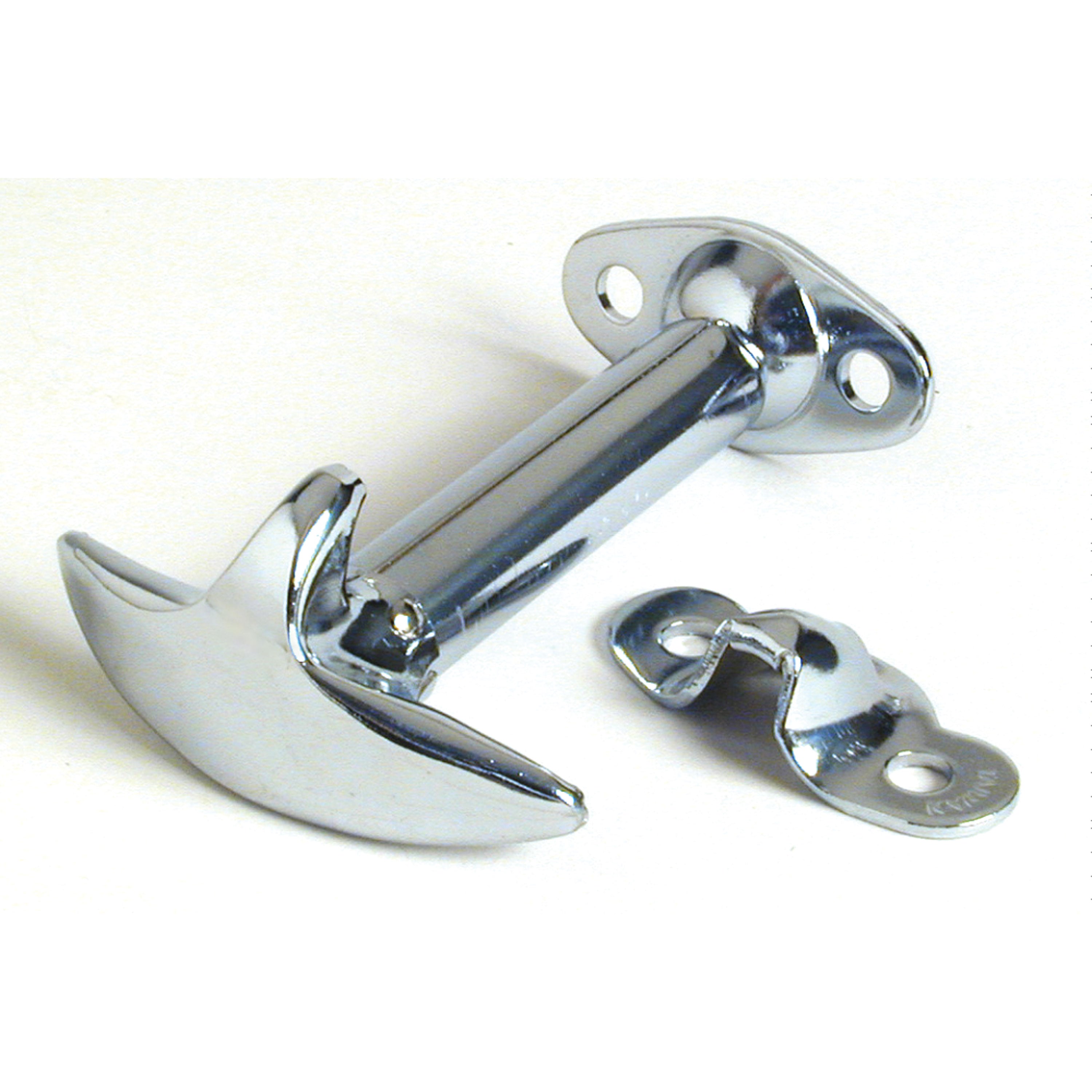 Keep your RV's interior engine compartment firmly locked with RV Designer's Engine Compartment Latch. This versatile latch may also be used on cargo and utility compartments. The length of the compartment latch is 4". It features durable metal construction with a chrome finish. Each package includes one engine compartment latch and a mounting plate.