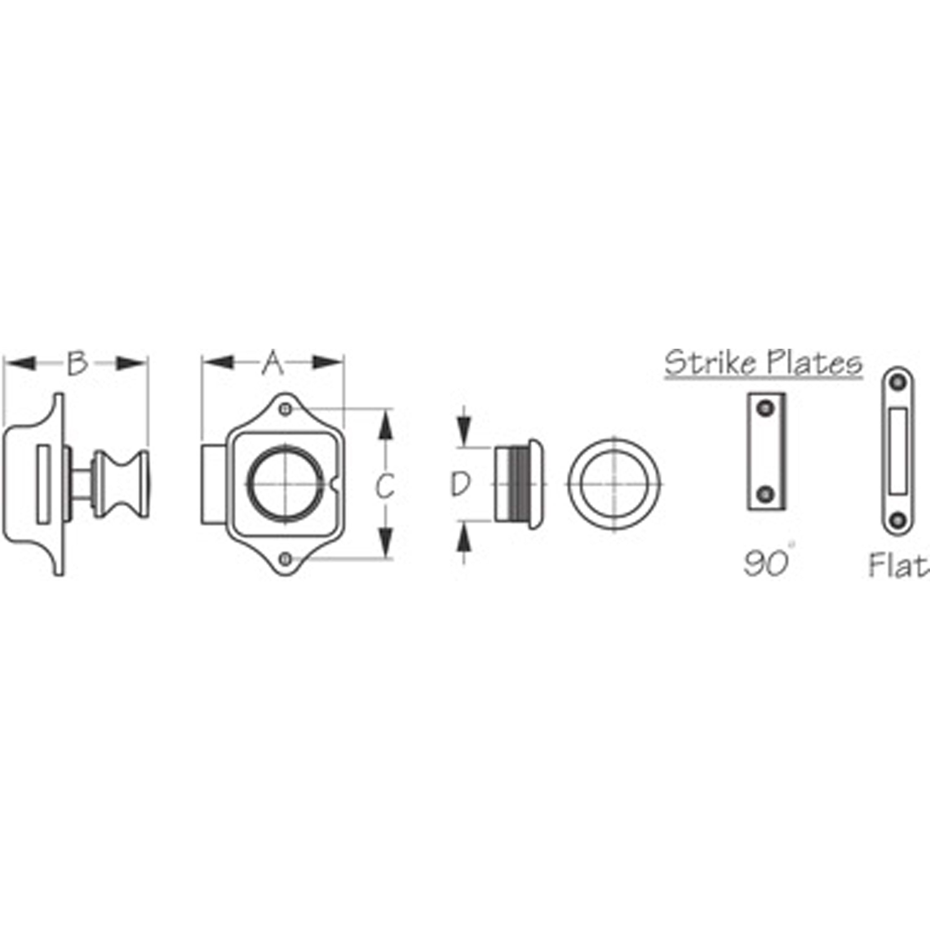 Push button rim latch housings are constructed of plastic with a sturdy chrome plated or polished brass knob. Streamlined design features a positive action closure ensuring cabinets and drawers stay closed until the button is deliberately pushed again. Suitable for left side or right-side use. Mortise mount for a sleek, finished appearance. Packaged version comes complete with both flat and 90 ° strike plates for inset or overlay mounting.