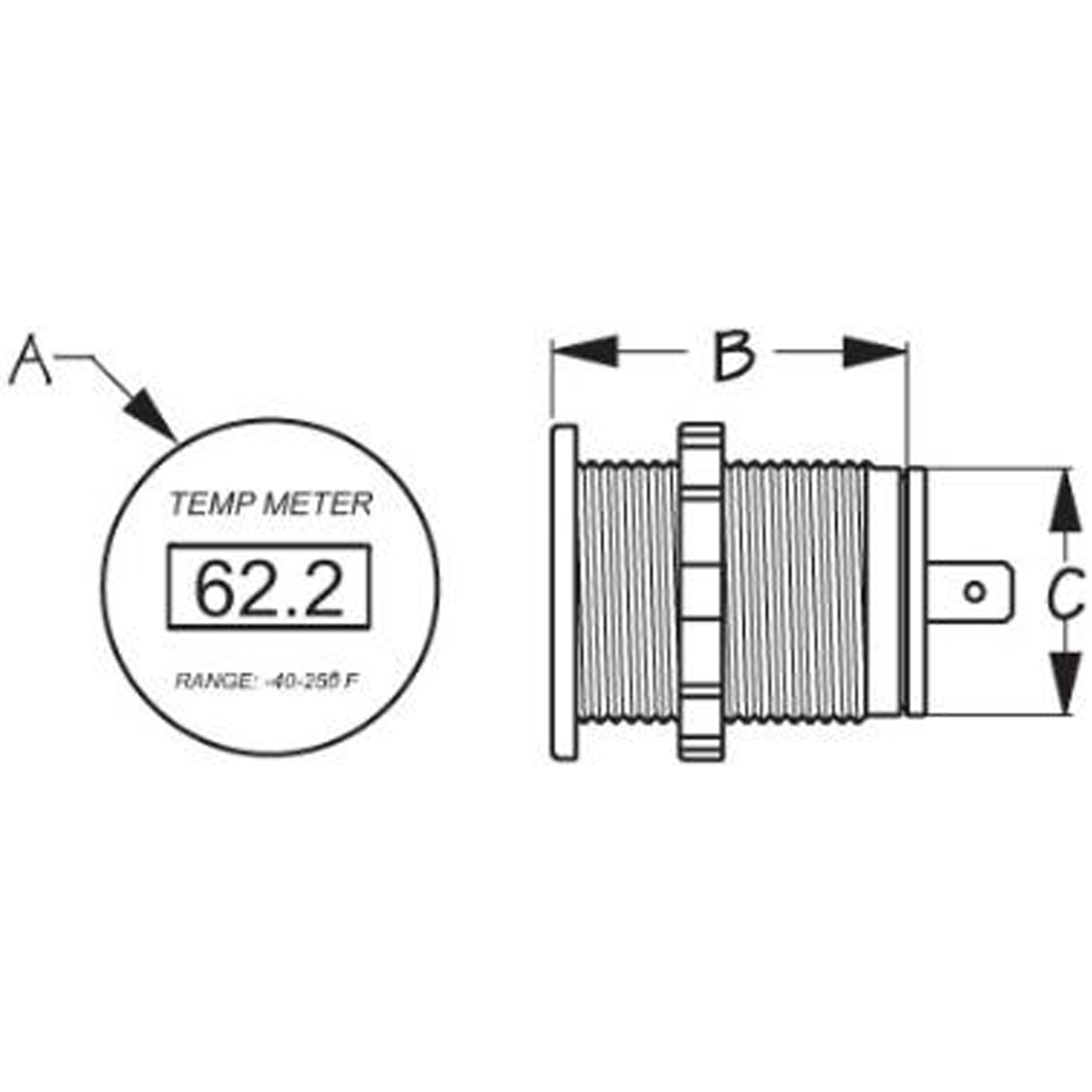 OLED (Organic LED) Temperature Meter is designed to withstand constant vibration and the rigors of a wet marine or dusty outback environment. Includes a prewired temperature sensor with a 6 cable. Monitors temperature on a bright, waterproof, daylight readable OLED screen. High contrast and resolution make this screen visible from a wide viewing angle, even with polarized sunglasses. Reverse polarity protected. Same compact round size as a standard 12V receptacle, this OLED Temperature Meter supports many installation options. Constructed of injection molded nylon. Installation is as easy as drilling a 1-1/8" hole, inserting the socket body, tightening the locking nut, and connecting the wires.