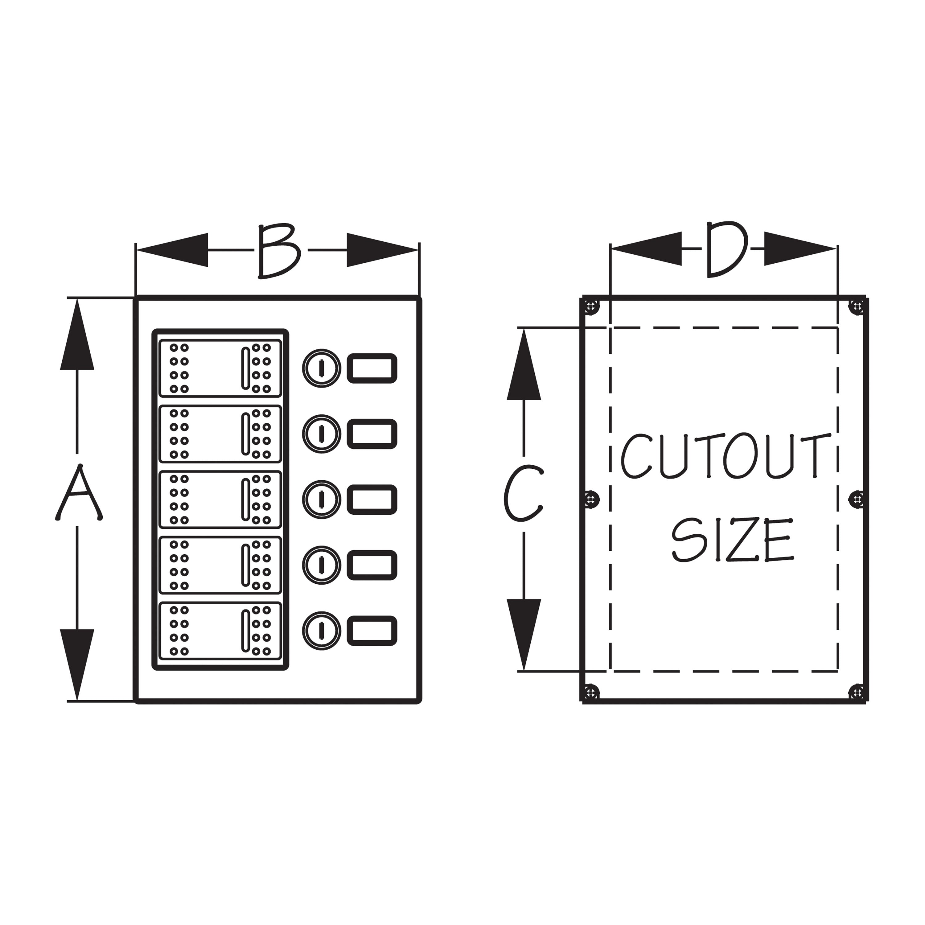 The Wave Rocker Switch Fuse Panel features five ignition protected, illuminating SPST On/Off rocker switches and five fuse holders for use with standard AGC 1/4 x 1-1/4 standard glass fuses (two 3A, two 5A, one 8A, and one 10A). Individual circuit 10A max. 30A total. Includes a sheet of 20 preprinted decals to customize to your specific application. Label decals are back lit with green LEDs. Constructed of injection molded nylon. Installs with six fasteners (not included).
