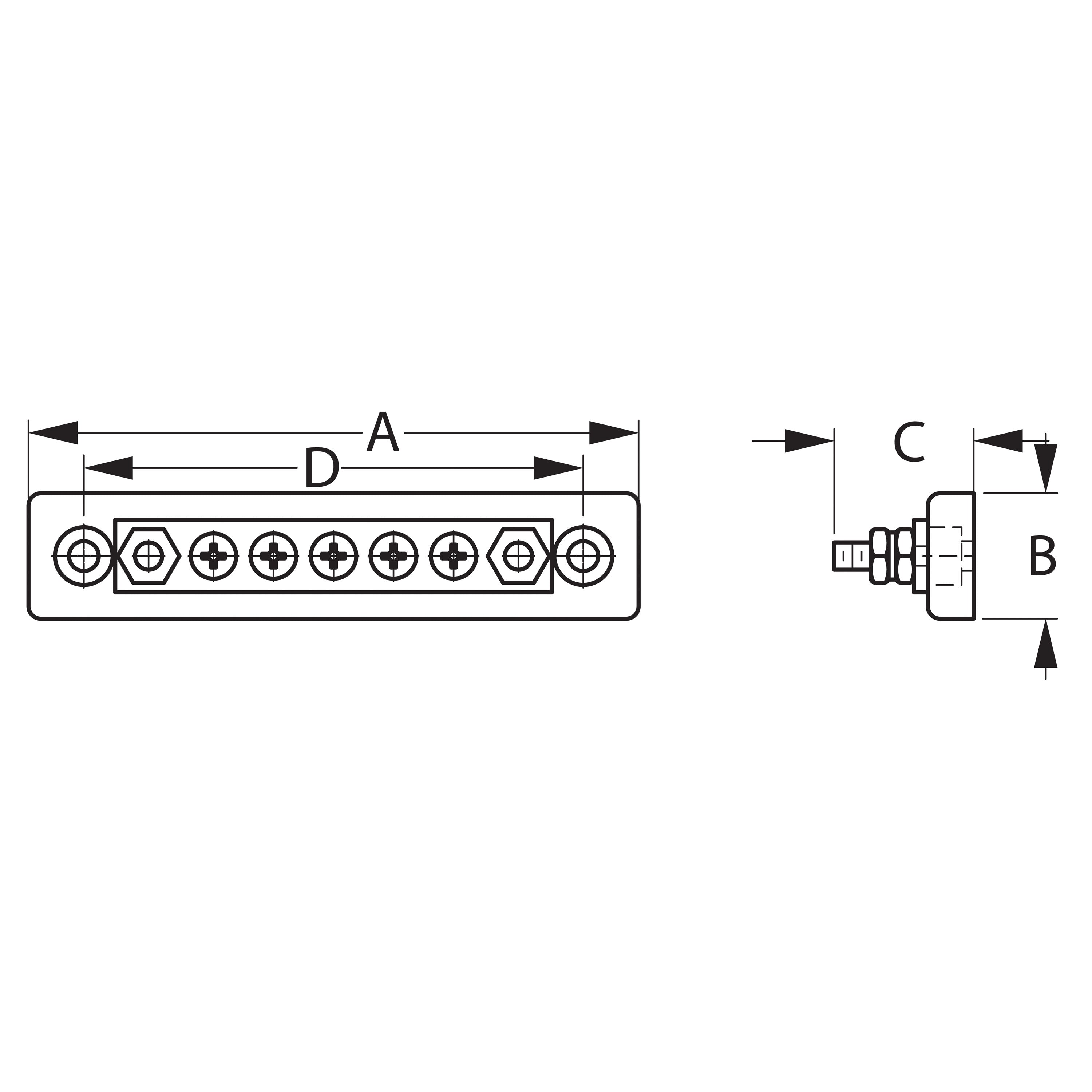 This Buss Bar Screw-Terminal Block is equipped with two each #10-24 studs for main wire connection. Constructed of tin plated brass and ABS. Designed for use with tinned copper marine wire which shares the same expansion rate to prevent loosening wires and reducing electrolytic corrosion caused by pairing two disparate metals. Maximum: 48VDC, 100 amps. #8-32 terminals. Installs with two #10 RH fasteners (not included).