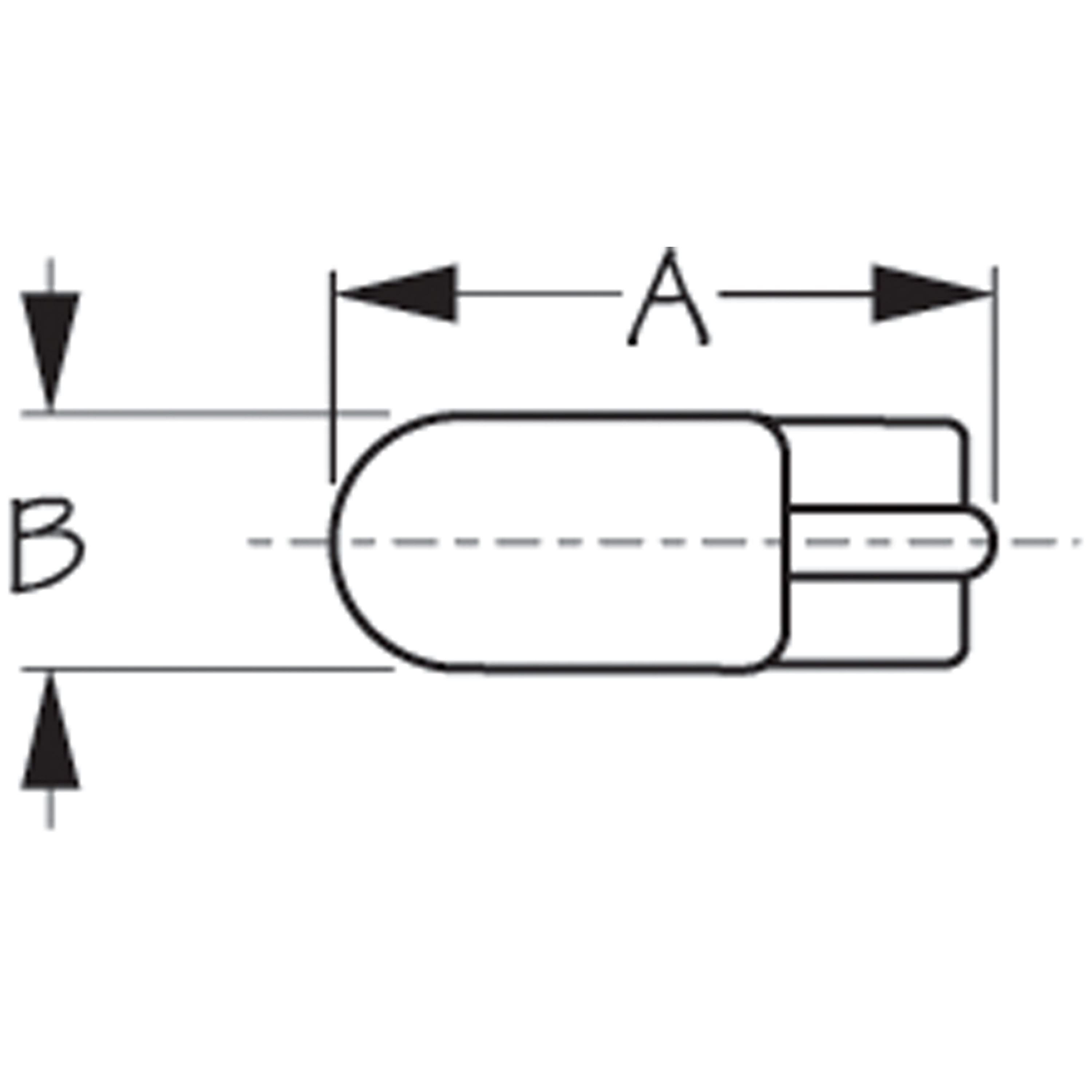 Similar to a bi-pin connector, a Wedge Base Light Bulb uses two wires that extend into the bulb and are bent up on the sides of the base where they make contact with the socket. Compression force holds the bulb in the socket to prevent loosening from vibration. Ideal for inside or under cabinets and shelves.