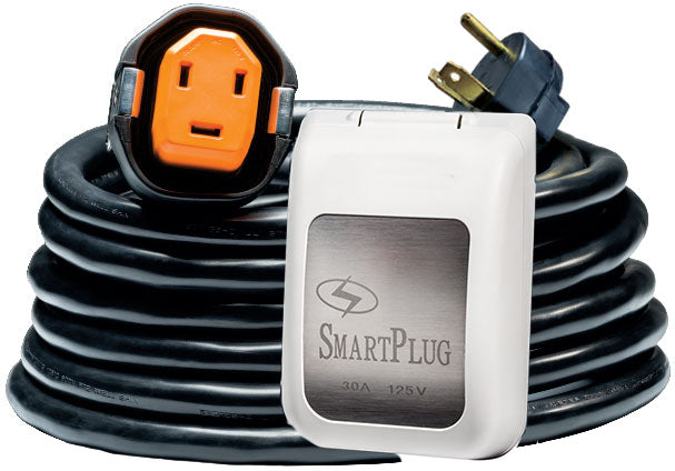 This RV cord allows you to connect to a standard 30 Amp push-type park side pedestal and a SmartPlug 30 Amp inlet. This 30 Amp corset offers a complete safe and easy to use power solution. The BM30PW, 30 Amp / 125V SmartPlug male inlet reduces overheating, has a weatherproof seal, and has a multi-point locking system to improve safety and performance on your vehicle.