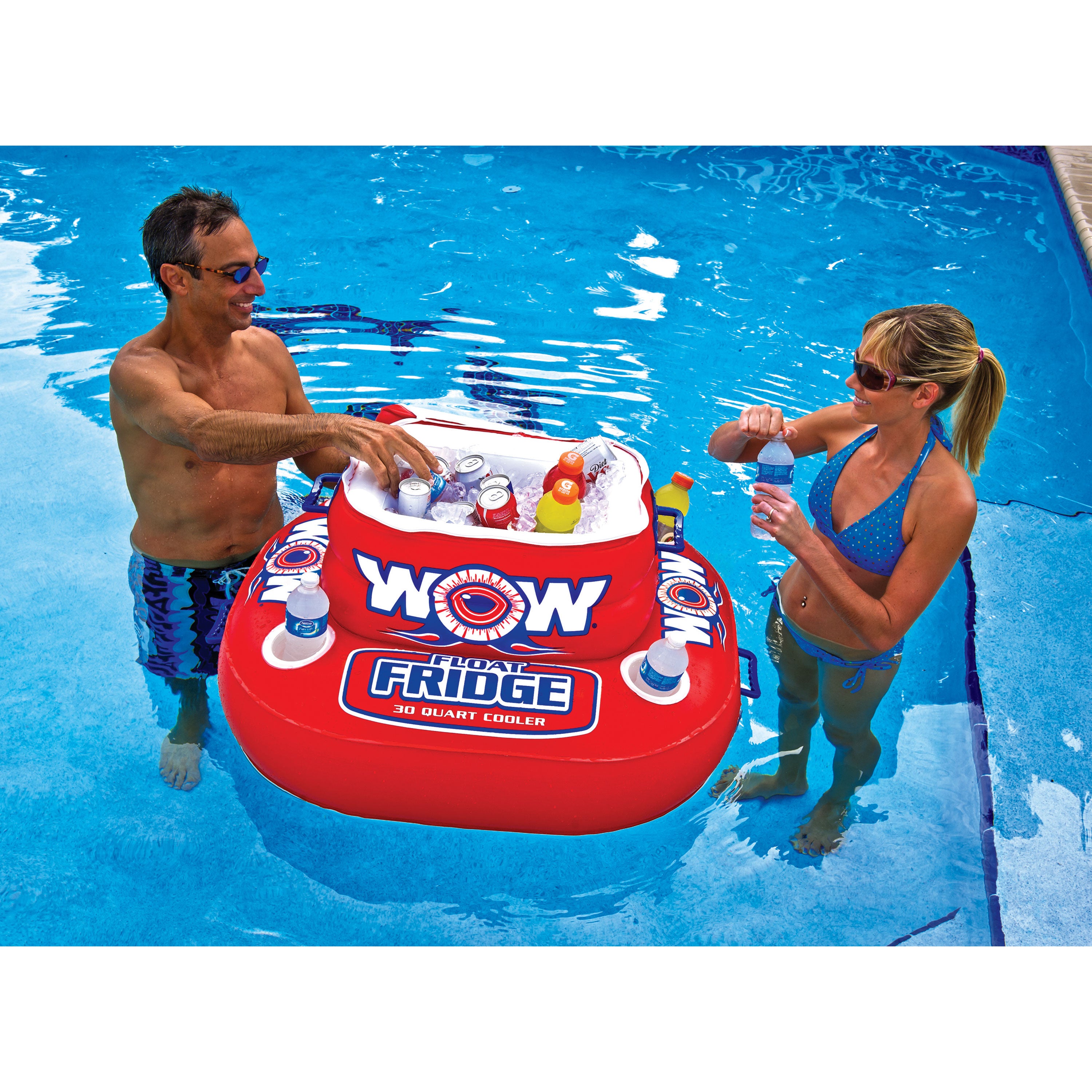 New rectangular shape floating cooler can hold up to 30 cans of your favorite beverage. The thick sidewalls and double-layered padded bottom will keep your beverages cold all day. It comes with a grommet you can use to attach it to your floating island or lounge or to anything else you want it to stay close to.